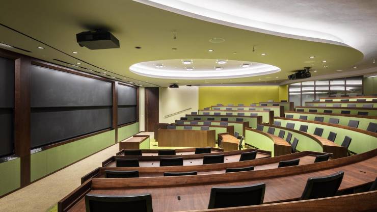 哈佛大学讲堂1:1比例设计,极具学术氛围,在234平的空间内,可容纳140人同时与会。配备了前沿音频,视频及投影设备,且满足远程学习需求,可用于:组织内部进修项目,讲座,学术对话会议等。
