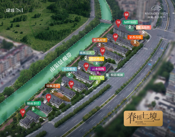 富春江繁华三公里,城市精粹资源核芯带,生态人文地标集群。绿城·春桂璟庐,主踞富阳城芯高地,对望约110万方滨水地标TOD——秦望城市综合体,于繁华城芯盛享封面级资源。