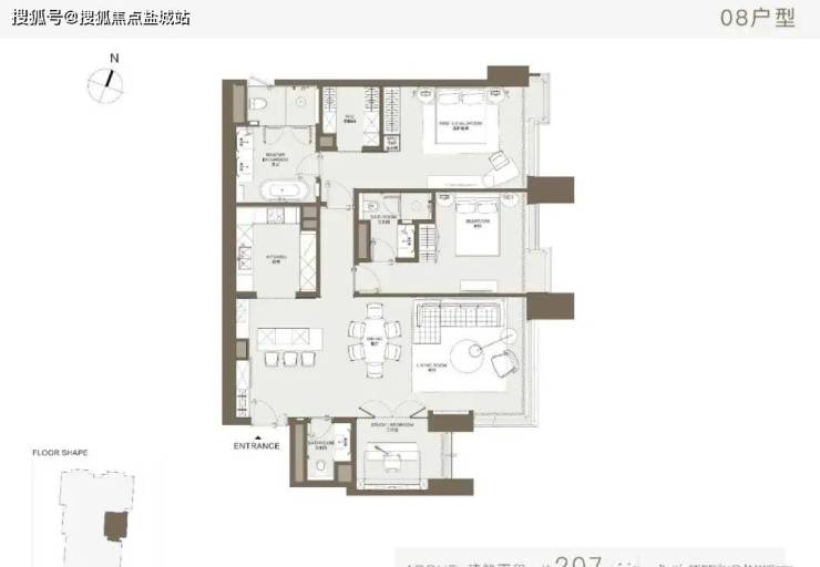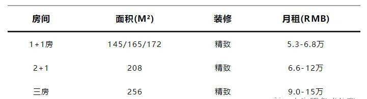 上海宝格丽公寓 ,位于整栋建筑的5层至32层之间,共计27层,243间公寓,提供一居室到三居室,面积约146㎡到约256㎡,而32层则为600㎡的复式结构户型。