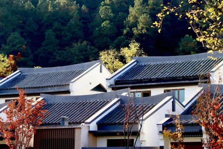 白墙黛瓦的江南传统建筑风格与周边青山绿水的环境完美契合。