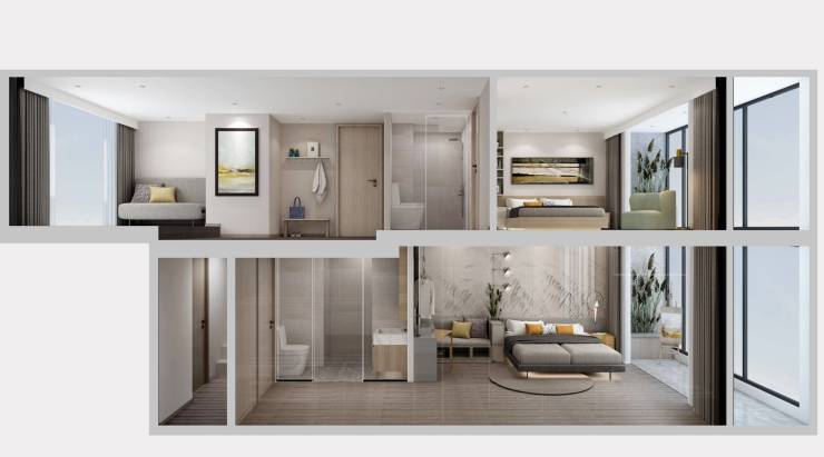 洞察市场所需,项目打造建面约40-96㎡公寓,朗阔挑高,可创新打造为loft,买一套享两套,在阔绰层高的默契配合下,轻松分割两层独立空间,双层精彩天地,互不干扰,轻享投资与生活的舒心便利。