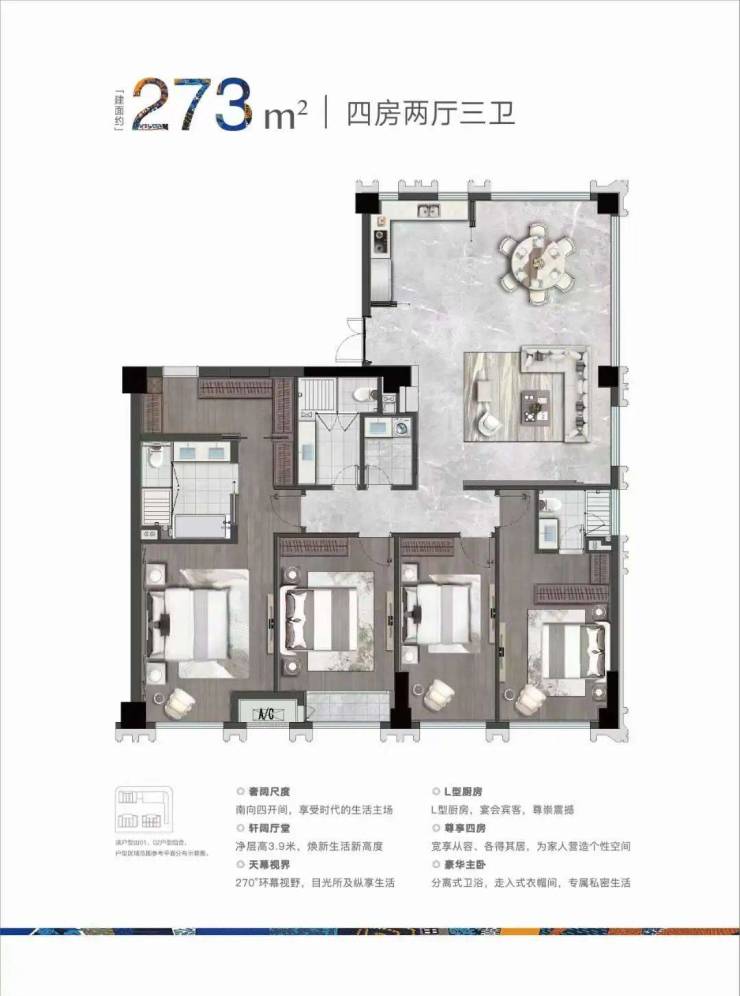 奢阔南向4开间,搭载宽敞通厅与观景落地窗,预留给每一个功能空间的尺度都很实用且合适。确保视野开阔之余,也能让不同生活习惯的家人互不干扰。且大尺度采光面,极大提升舒适度,这对当代进阶圈层来说,无疑是高品质生活的美好诠释。