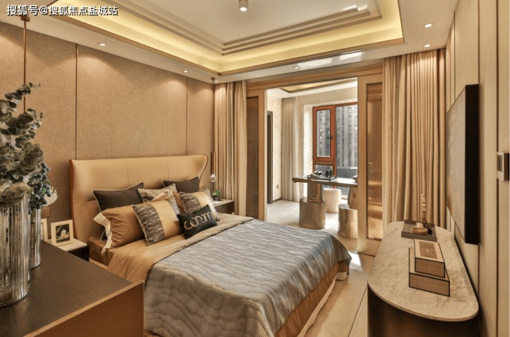 南向老人房为全功能套房设计,尤其是南向阔绰阳台,试想一下父母起床一步就能跨到阳台,莳花弄草、悠然烹茶陶冶情操。
