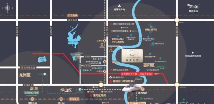 【一轴一干线,三铁四高速】高景花园位于惠阳政务区,紧邻“丰”字交通最核心干道——叶挺大道,厦深高铁惠州南站在侧,深圳地铁14号线16号线,未来惠州1号线(规划中)铁扇门站就在家门口,惠大高速无缝衔接深圳、惠城、惠湾。