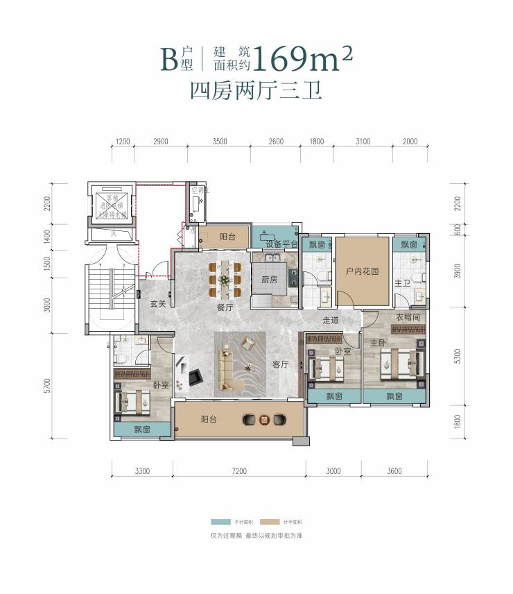 阳台/套内花园半赠送+4飘窗/设备平台全赠送:更高实用面积