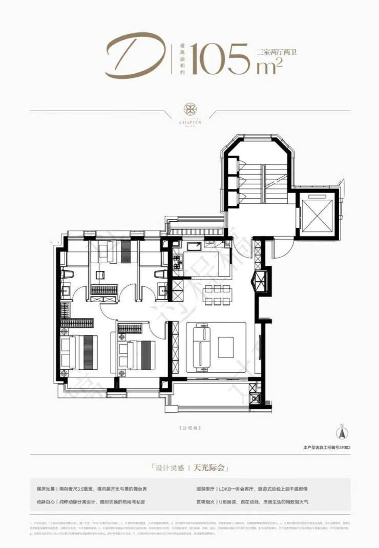 建面约105㎡及建面约125㎡纯洋房。