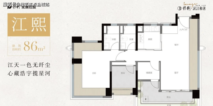 物业方面央企保利物业,楼栋也做了一定角度的调整,避免彼此之间对江景的遮挡,户型方面86-118-122-142平方三至四房为主。