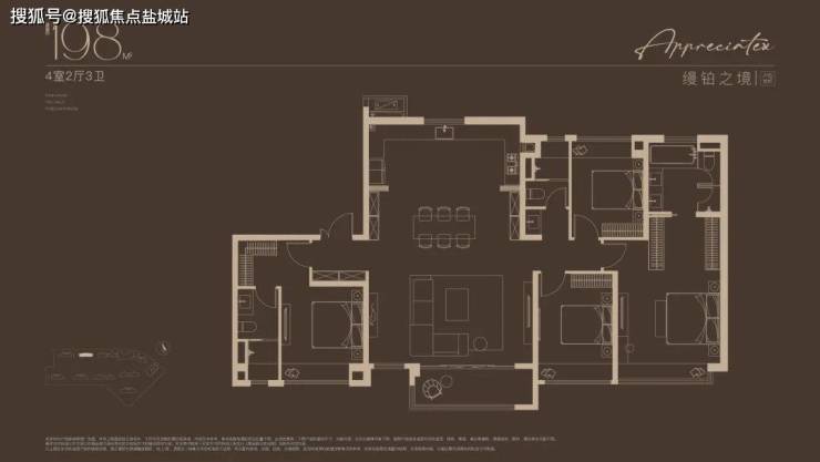 建面约198㎡4房户型,嘉定“收藏级”传世大宅!塔尖人士的挚爱之选!2梯2户的设计,子母双开门礼序入户,私密尊崇门厅,彰显尊崇生活仪式感。