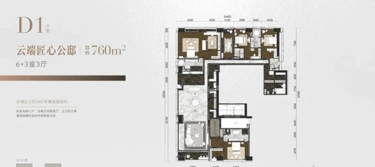 ◎建面约760㎡ 6+3室3厅,云端匠心公邸