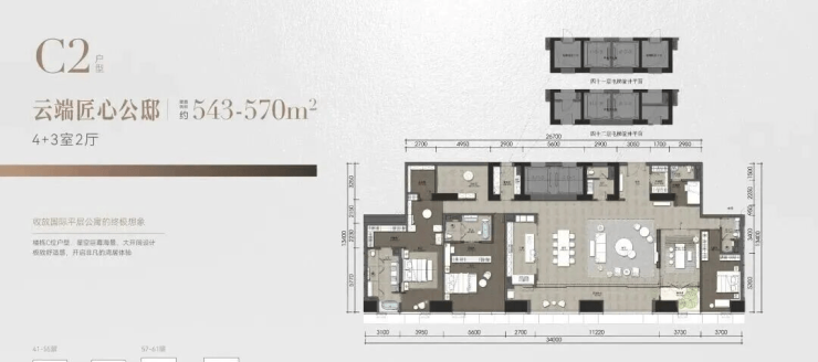 ◎建面约543~570㎡ 4+3室2厅,云端匠心公邸