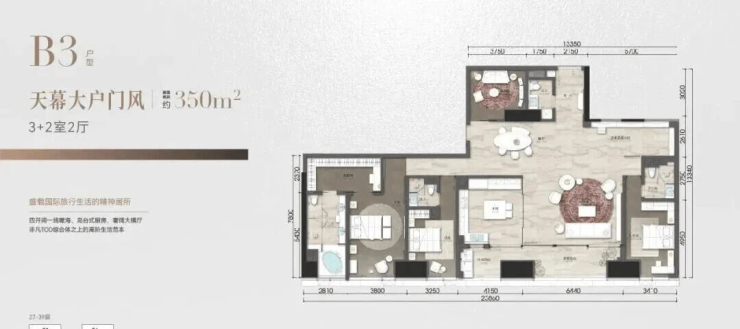 ◎建面约350㎡ 3+2室2厅,天幕大户门风