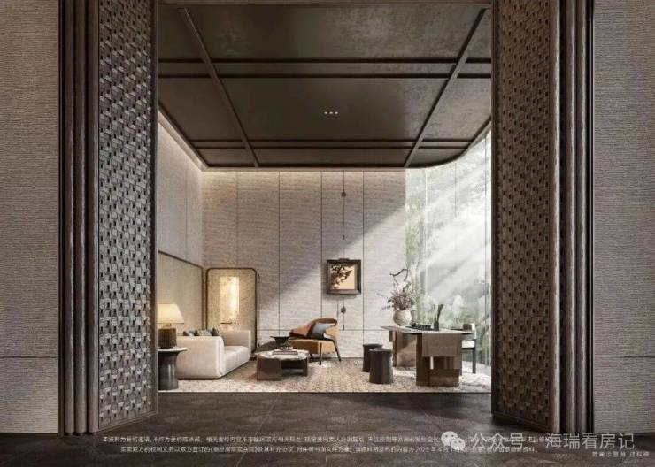 不同于寻常项目进门后直接进入小区,招商序打造约4.5m高的迎宾楼,玄关左右两侧均可通行,且各建有一处会客区域,给到了业主更多元和更具仪式感的归家场景。实景1:1复刻的背后,是招商序对时间与匠艺的不吝付出。