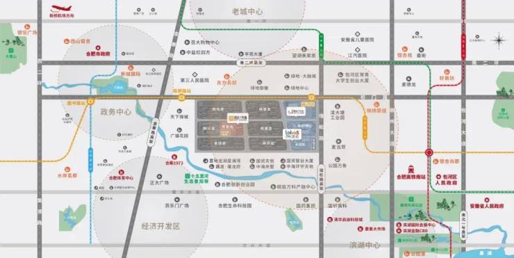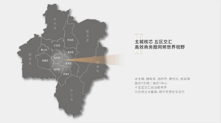 承主城、融政务、领经开、聚包河、启滨湖,于五区交汇处会晤世界