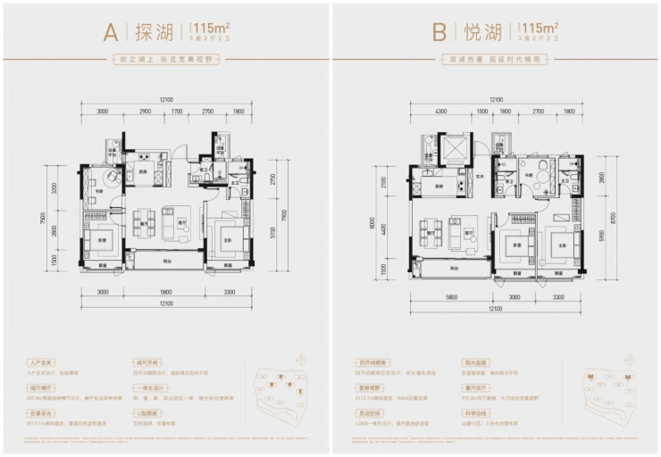 › 约117㎡3房2厅2卫户型&约128㎡4房2厅2卫户型
