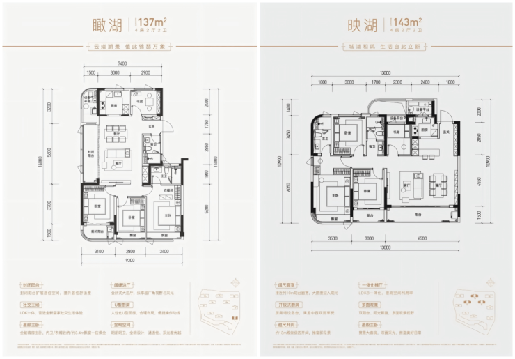 › 约137㎡4房2厅2卫户型&约143㎡4房2厅2卫户型