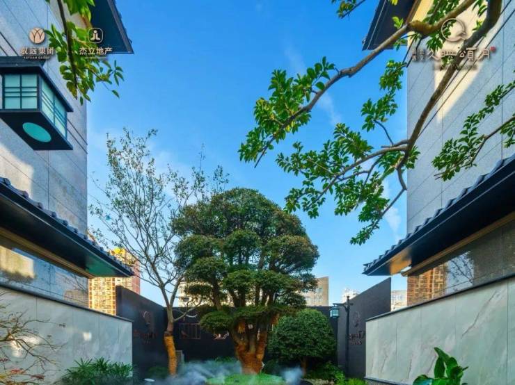 采用了四水归堂,水聚天心的空间设计理念,展现开合有序的空间变化,将光、风、雨、雪等自然元素融纳其中,当身处院内,与自然的对话也在这四方院内悄然发生,将中式韵味表达的淋漓尽致,给业主们带来富有仪式感的归家体验。