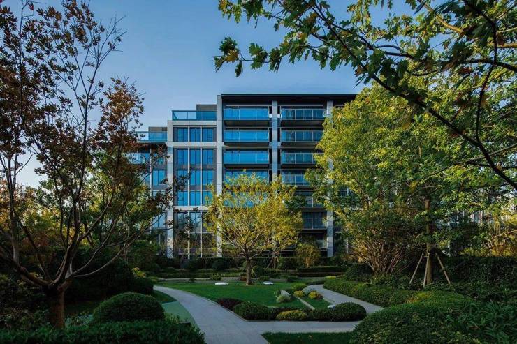 松弛感弥漫在世博天悦的每个角落。它用了整整约6万㎡土地造园,面积和杭州西湖的三潭印月相当,园内种着娜塔栎、油橄榄、香橼、河桦等近百种植物。