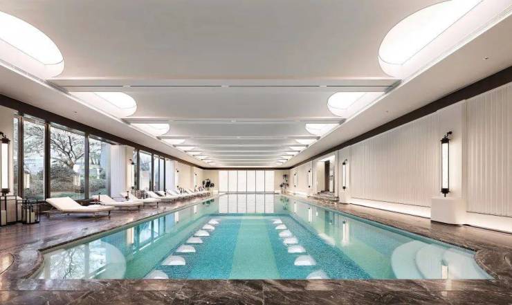泳池的超白玻很透,单方造价就达千元以上,边框狭窄,具有极好的隔温隔音隔汽之效,同时又具有极好的透光率,让室内外场景清晰交互。更值得一提的是,大平层业主,将来可免费奢享湾流club的全部设施。