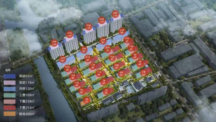 •户型面积:建面约169㎡、239㎡、253㎡叠院;120㎡洋房;95㎡、115㎡高层