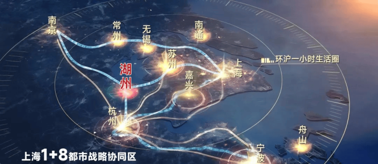 湖州是上海1+8都市协同区 ,1小时交通枢纽区,跨越2省1市,凝聚9城,城市发展政策宏利期。