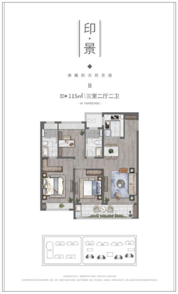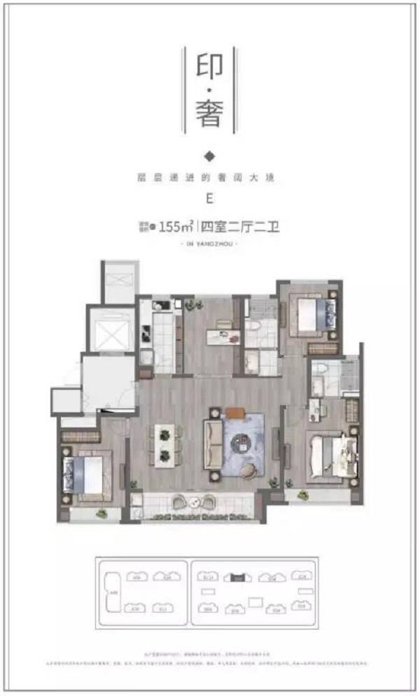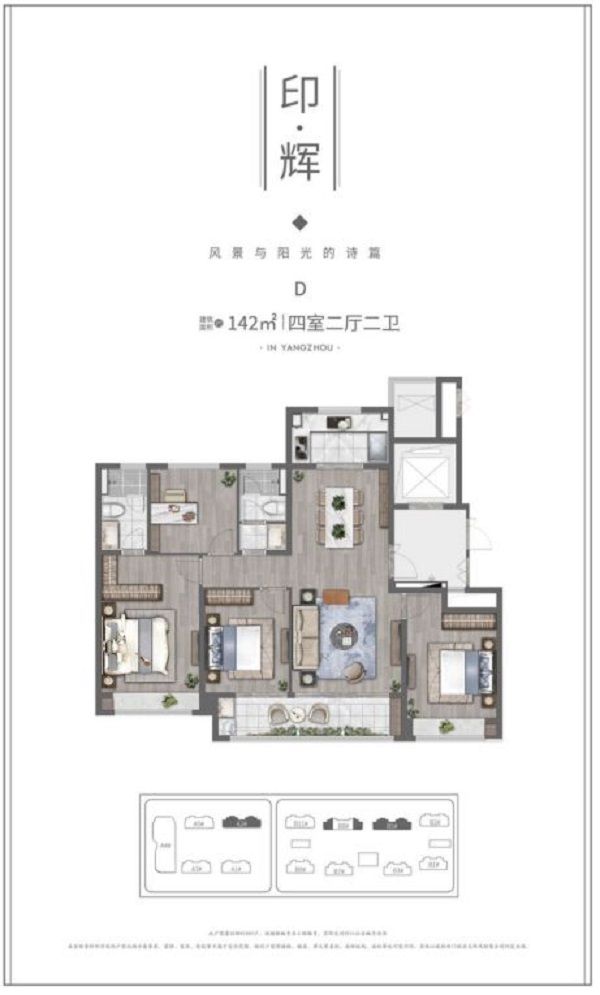 扬州印项目是由扬州新能源置业&融创中国两家知名房企强强联合,于广陵新城CBD板块(市民广场东侧)打造的项目。项目总占地约5.67万方,总建约16.1万方,容积率2.0,绿化率35%,由12幢18层高层组成。项目户型建筑面积段95平方米-150平米左右。