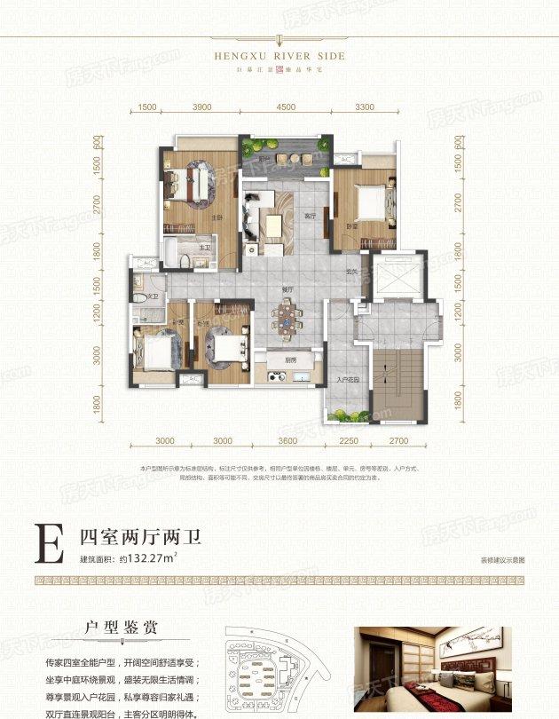 恒旭·江悦台位于江安县小坝片区生态宜居新城核心地段,地理位置优越,被一岛两江三公园环抱,坐拥公园配套和巨幕江景资源,并且是江安为数不多的拥有70年土地使用年限的居住项目 恒旭江悦台是恒旭置业在江安开发的高品质,低密度住宅项目,总占地190亩,总共42栋住宅,总户数为1568户,车位比例为1:1;项目规划采用分区分层设计,拥有阔景高层,轻奢洋房以及尊雅别墅 恒旭江悦台引入高端智能化物业管理服务理念,打造一流体系化管理服务标准,为业主提供一种贴心知心的尊崇礼遇,让您享受真正的绿色生态健康全新的生活方式。 景观设计概念: 为业主打造一个“出则繁华,入则宁静”具有传统中式院落格局与禅意意境相融合的景观空间。片墙围合,山石着色,纳自然的光与影、草与木,让空间流动;将生活诗化,以吟咏诗歌的情绪传达出东方美学的简素精神..