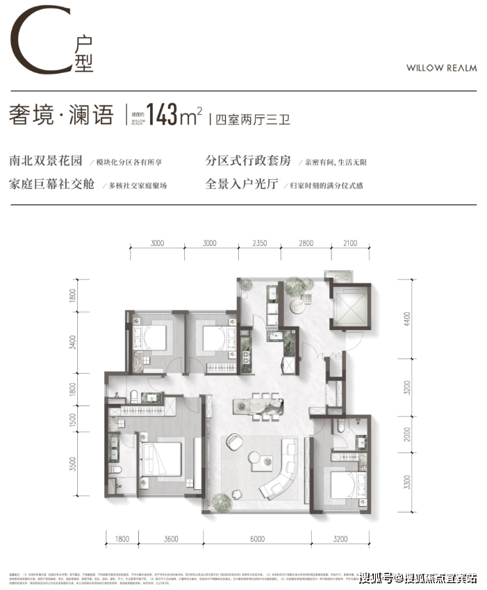 建面约143平套四