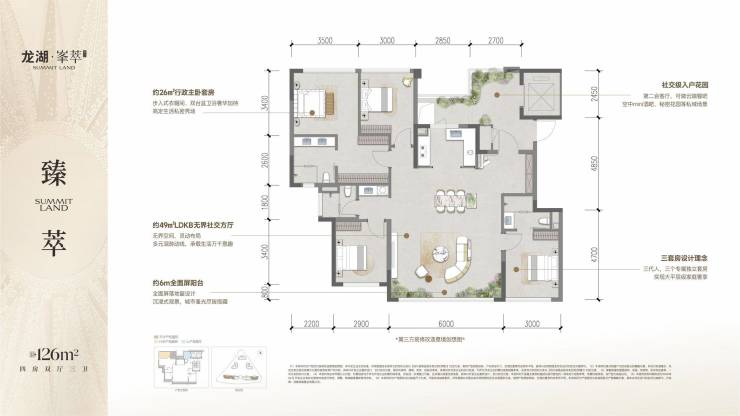 126㎡ :总价420-450万 装标3600元 得房率116%