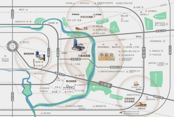 楼盘地址: 成都市成华区槐树店二路 288 号(近地铁 4 号线、7 号线槐树店站,紧邻万象城,周边公园、学校配套完善)