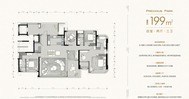 199㎡四室三卫:总价 774-877 万