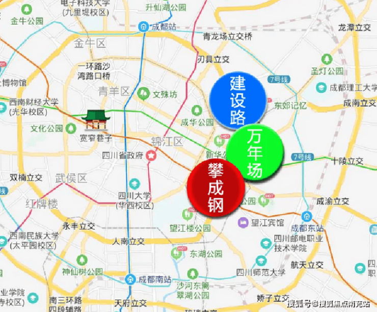 项目所处区域东邻万年场,南靠攀成钢,北为建设路,地块所处的新华公园板块堪称东二环黄金点位。具体到地块,往东200米便是万年场商圈,往南2公里可达攀成钢商圈,往北2公里不到即是建设路商圈,整个地块被三大商圈所包围,大半个城东的商业繁华汇聚于此。