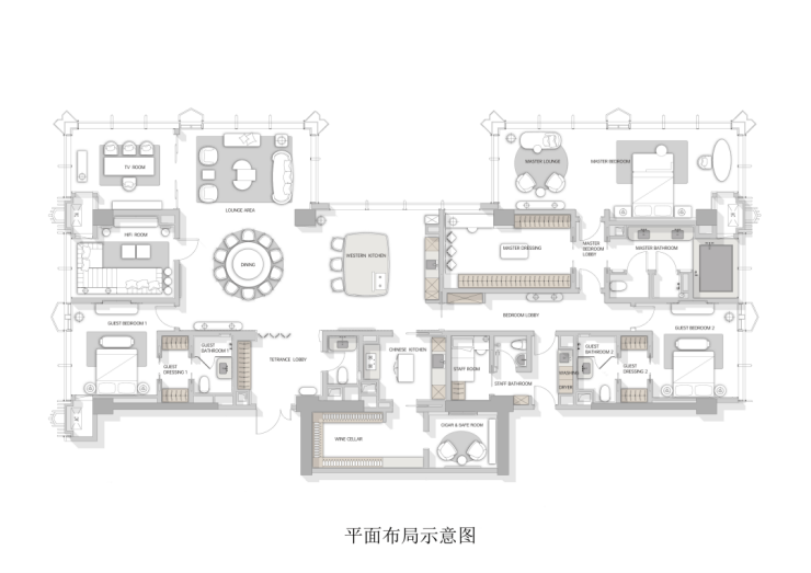 总建筑面积约60万平米,包含公园环幕奢装大平层、超甲写字楼、公园艺术商业街区、都市度假顶奢酒店四大业态。
