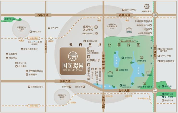 交通:两横三纵立体交通网络体系,两横:金牛大道、西华大道。三纵:金粮路、金芙蓉大道、三环路。坐享双地铁三TOD+10余条公交路线。