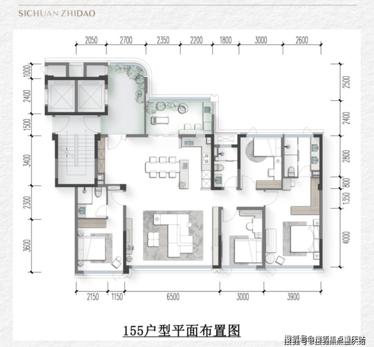 全维升级的户型理念:锦宸院·观著延续锦宸院的户型创新,推出了155㎡和185㎡两个面积段的产品。同样将多重院落体系植入平面布局,并针对高净值家庭全生命周期的动态需求,让空间具备多个场景功能的可塑性和可变性。