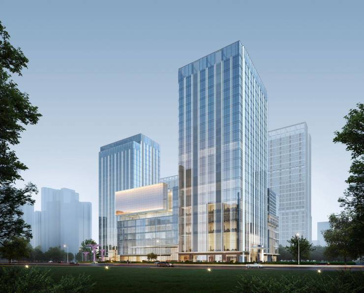 引鉴新加坡建筑理念,启幕城市窗格。外立面整体采用现代简约风格,以灰色、白色为主基调,大面积运用玻璃幕墙,呈现共建化立面高级感;部分外立面则以玻璃幕墙搭配石材、线条与建筑形成有意思的城市窗格,达到了一种丰富、有序、统一的姿态,形成强烈的品质感。