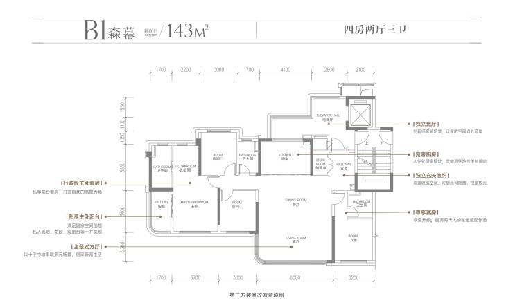 而过去170㎡级以上产品的配置与空间尺度,则被“观樾”运用到建面约143㎡户型中