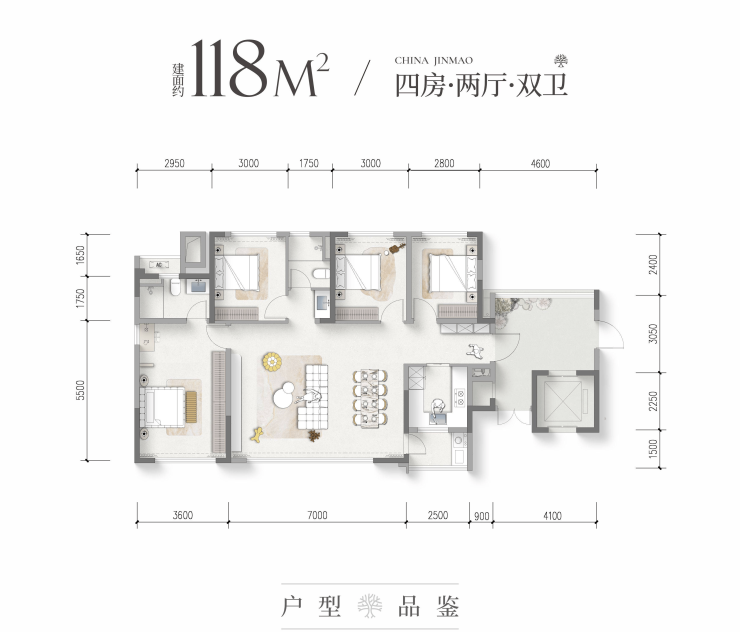 建面约118平套四