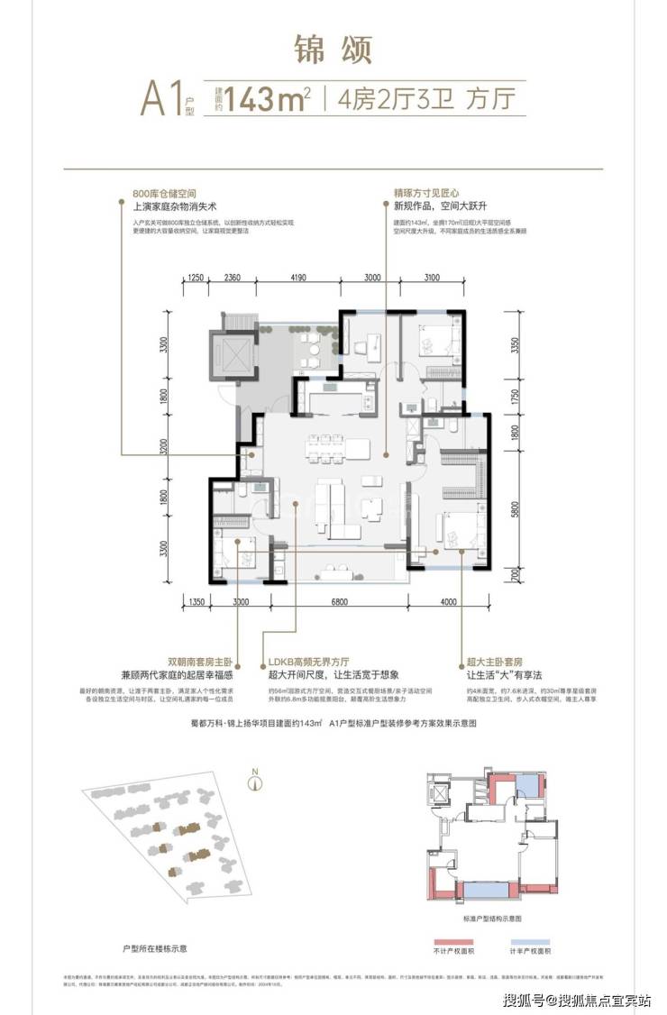 建面约143平套四