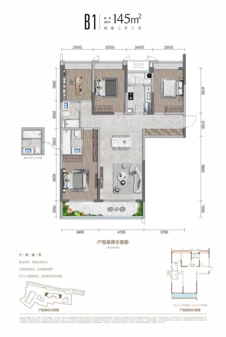 建面约145平套四