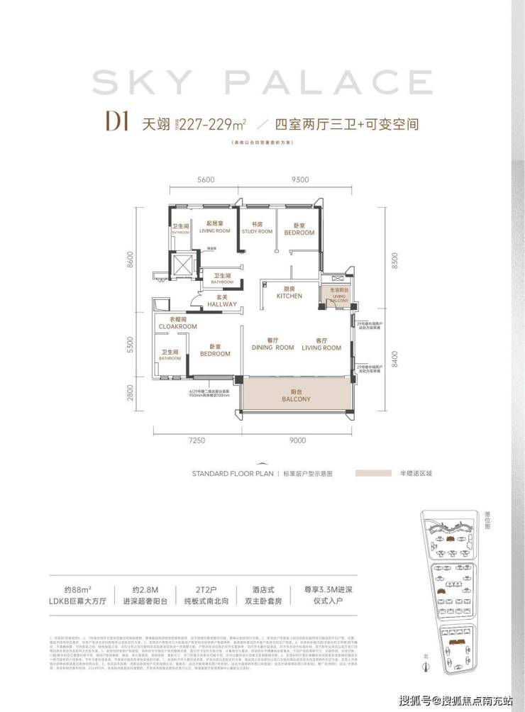D1 – 天翊(建面约227-229㎡ 四室两厅三卫+可变空间)