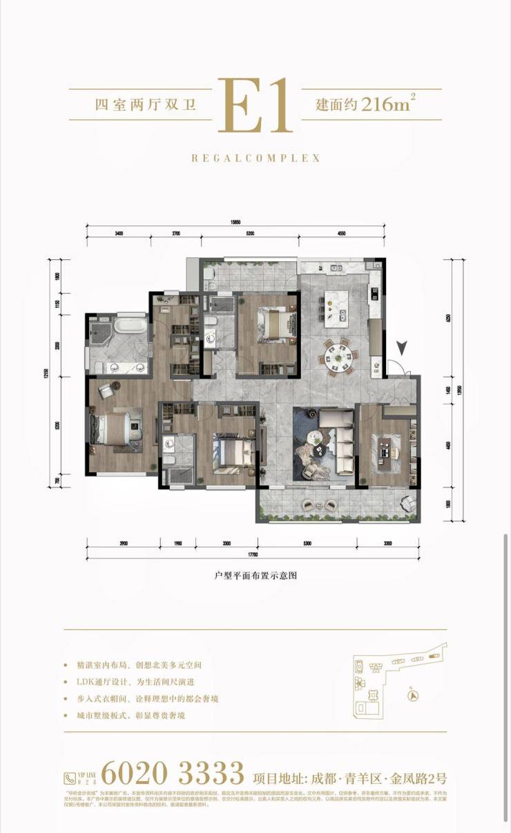 项目打造有高层、小高层和洋房等多种物业形态,尤其是在寸土寸金的内金沙极少有小高层或洋房供应。华府金沙名城推出了绝版的14F/16F小高层,真正“卖一套少一套”的珍藏品。同时又以建面约192-302㎡的豪华尺度,还原了每一户大平层的极致享受!