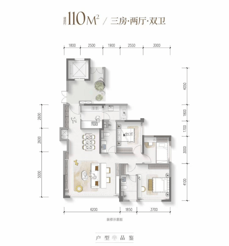 建面约110平套三