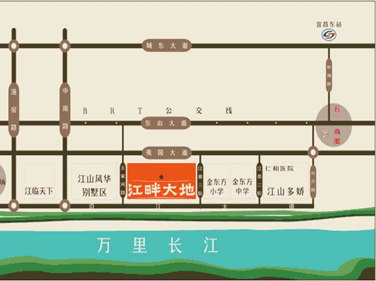 江畔大地雄踞万达广场、五一广场两大商圈,仁和医院、中心医院两大三甲医疗资源交汇之地,尽享宜昌城市繁华昌盛。江畔大地自建近1万平米商业配套,与江山风华等共同构筑成社区商业配套,生活悠闲便利;江畔大地的公共交通四通八达,出门就是BRT、1路、2路、9路、333路、101路、103路等多条线路,可谓畅达全城,让你真正体验“出则繁华,入则宁静”的便捷生活。