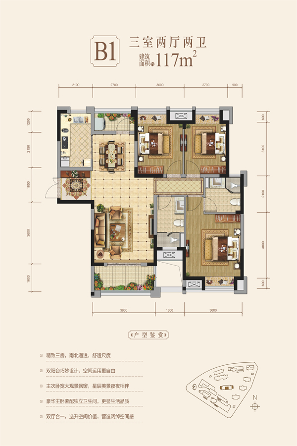 在售 南北通透 户型方正 主卧带卫 干湿分离 飘窗 厨卫不对门 双阳台
