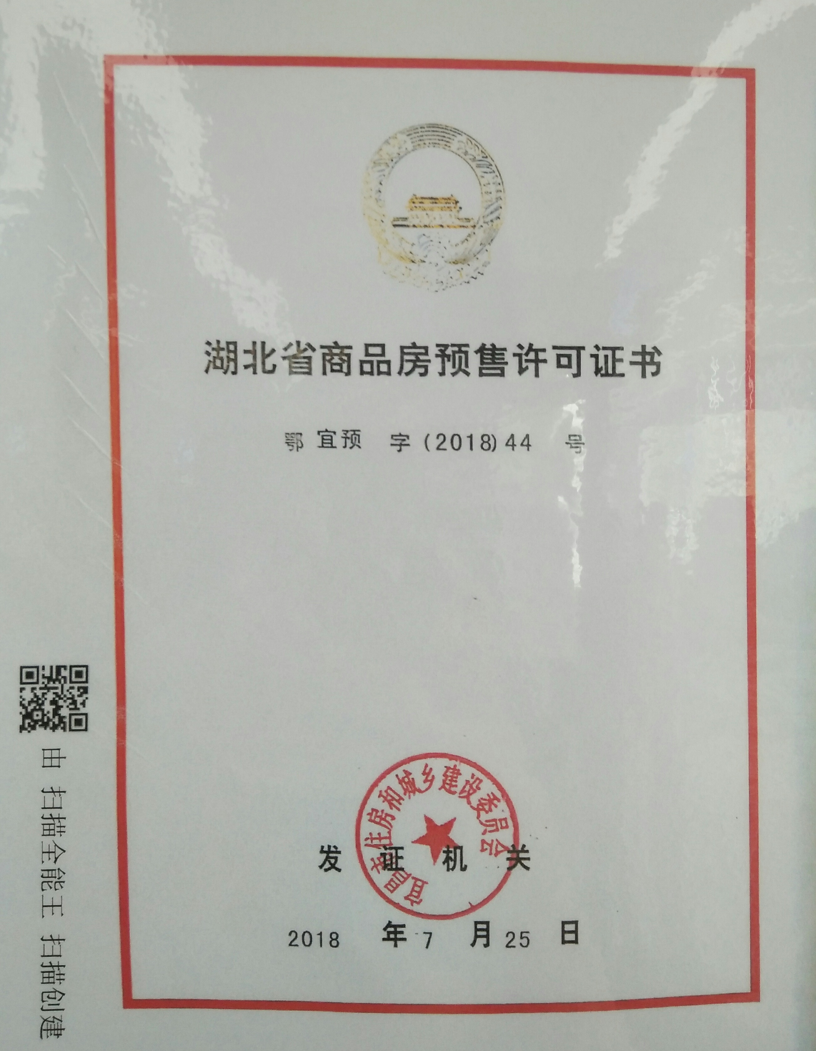 - 鄂宜预字(2019)33号 详情发证时间 2019-05-27绑定楼栋7、15号楼