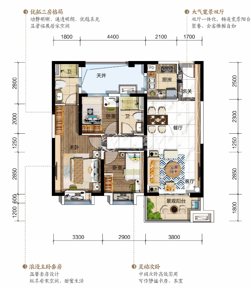 小区内部配套:幼儿园、超市、商业街、健身设施、儿童游乐场、会所、地下停车场