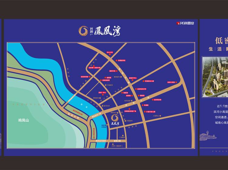 兴润.凤凰湾项目总占地约3.1万方,总建筑面积约8万平米,总体规划分为住宅和商业两块,由7栋高层住宅及2000平米商业组成。住宅建筑面积约5.5万㎡,共7栋楼,总户数480户,层高分为11层-17层不等,南北朝向为主,错立的楼栋排列,使得平均楼间距近50米,保证了每一栋楼的景观和采光,建筑风格采用的新古典,并结合了宜昌这座城市的人文生活习惯,以米黄色为主色调,结合涂料、石材等建筑材料,使得建筑立面质感十足。