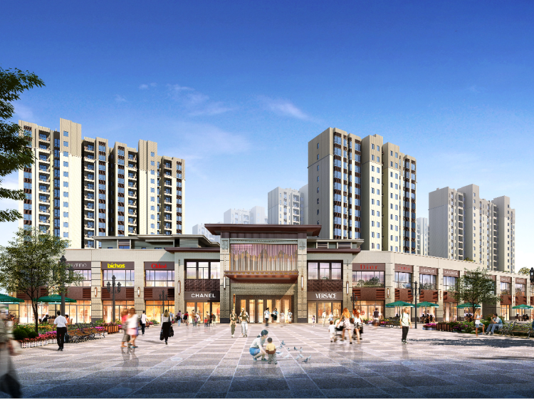 小区内部配套商业街、运动场地、游泳池