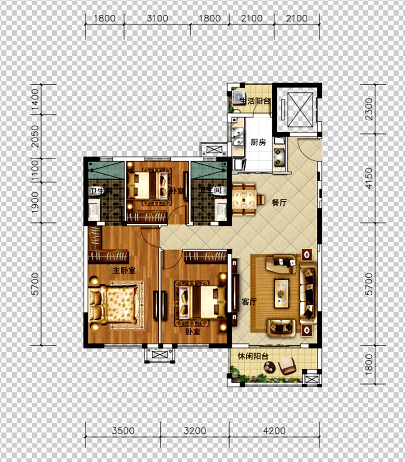 5)宽宅设计,全明通透,三室朝南,居住新标杆;