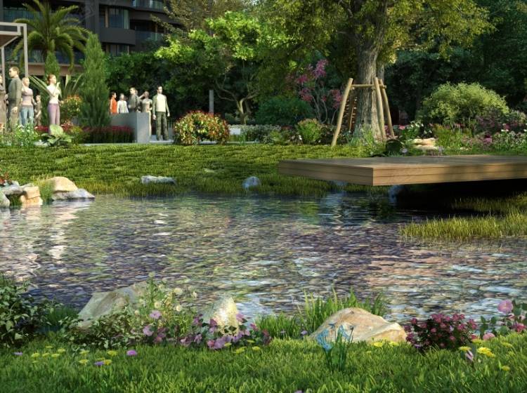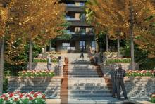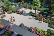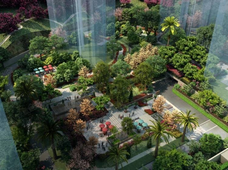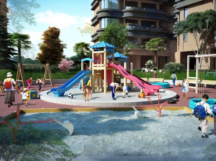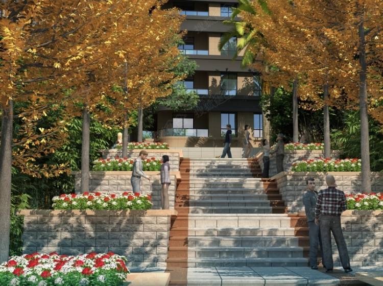 建设商业会所、办公楼,在A1#楼底层设置治安联防站、居委会、配电房,在小区中部设置一座中央水景花园。